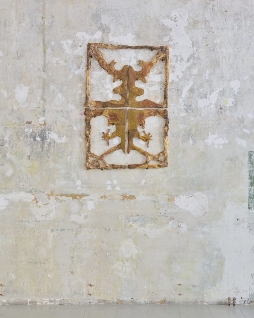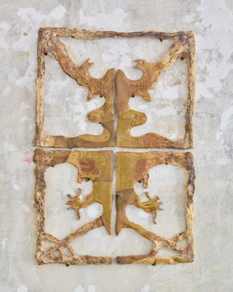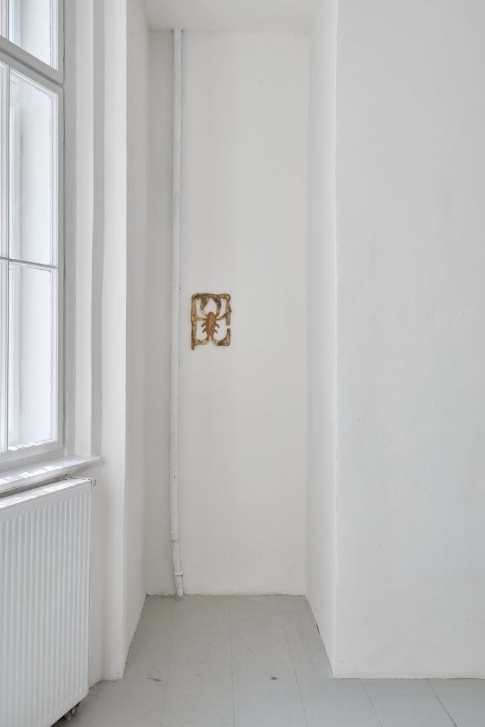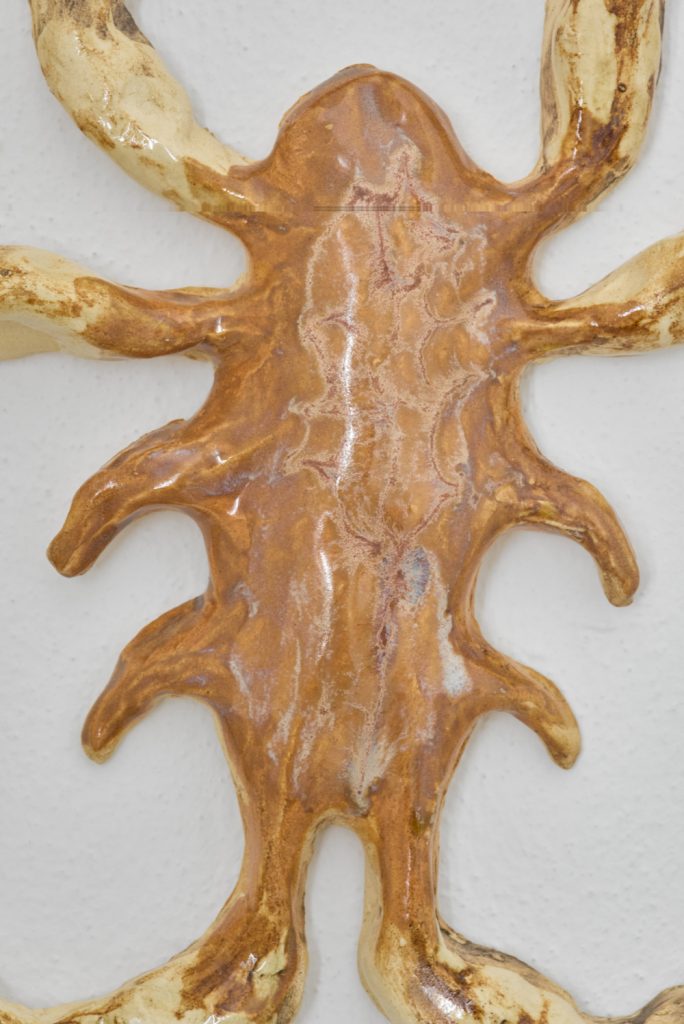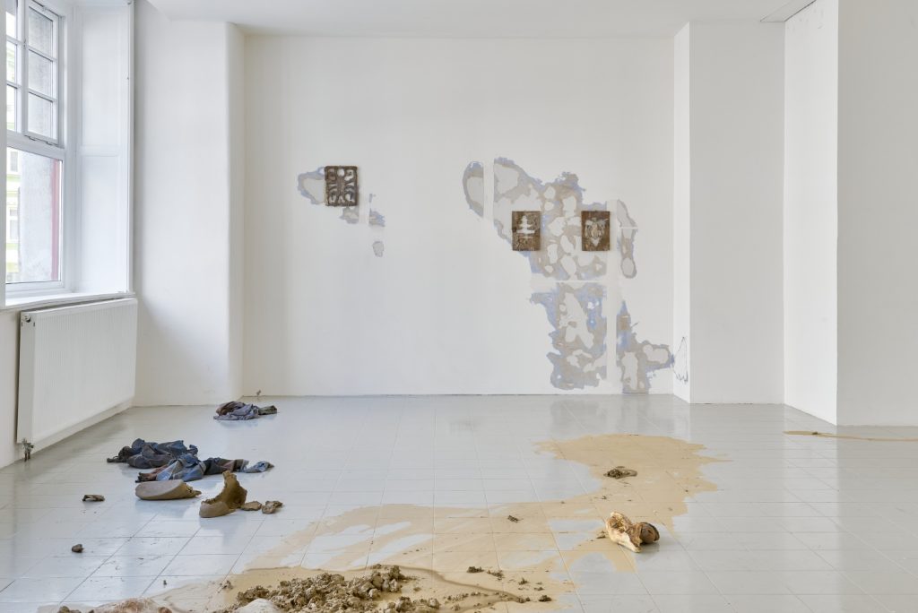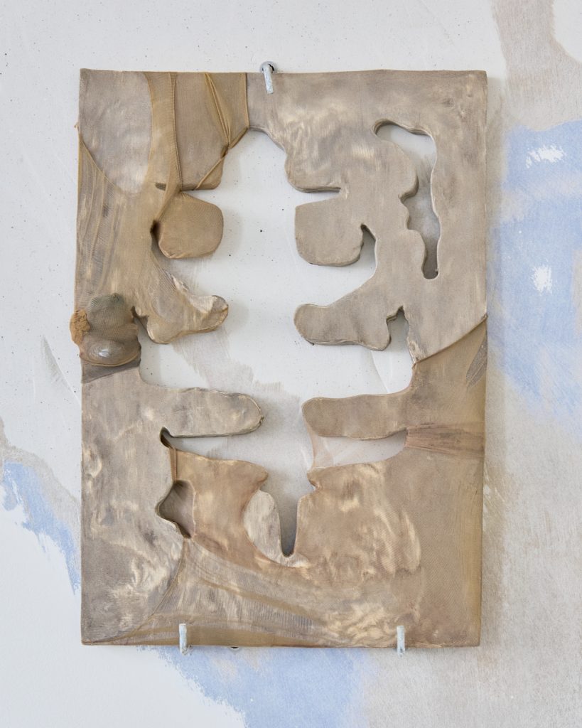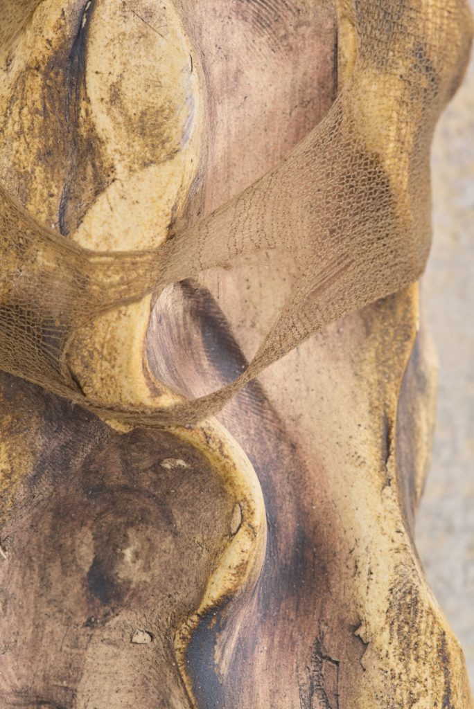 Projekt Aleuronové zrno Nely Britaňákové představuje neurčité prostředí utvářené těly, hlínou, textilem, v němž se stírá druhová identita. Ve zpomaleném světě přežívají zbytky života i zárodky nových forem nesoucí stopy úzkosti, transformace i pomalého zániku.