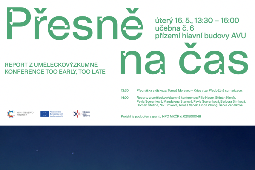 Přesně na časReport z uměleckovýzkumné konference Too Early, Too Late 16. května 2023 od 14:30uč. 6, AVU, U Akademie 4, Praha 7
